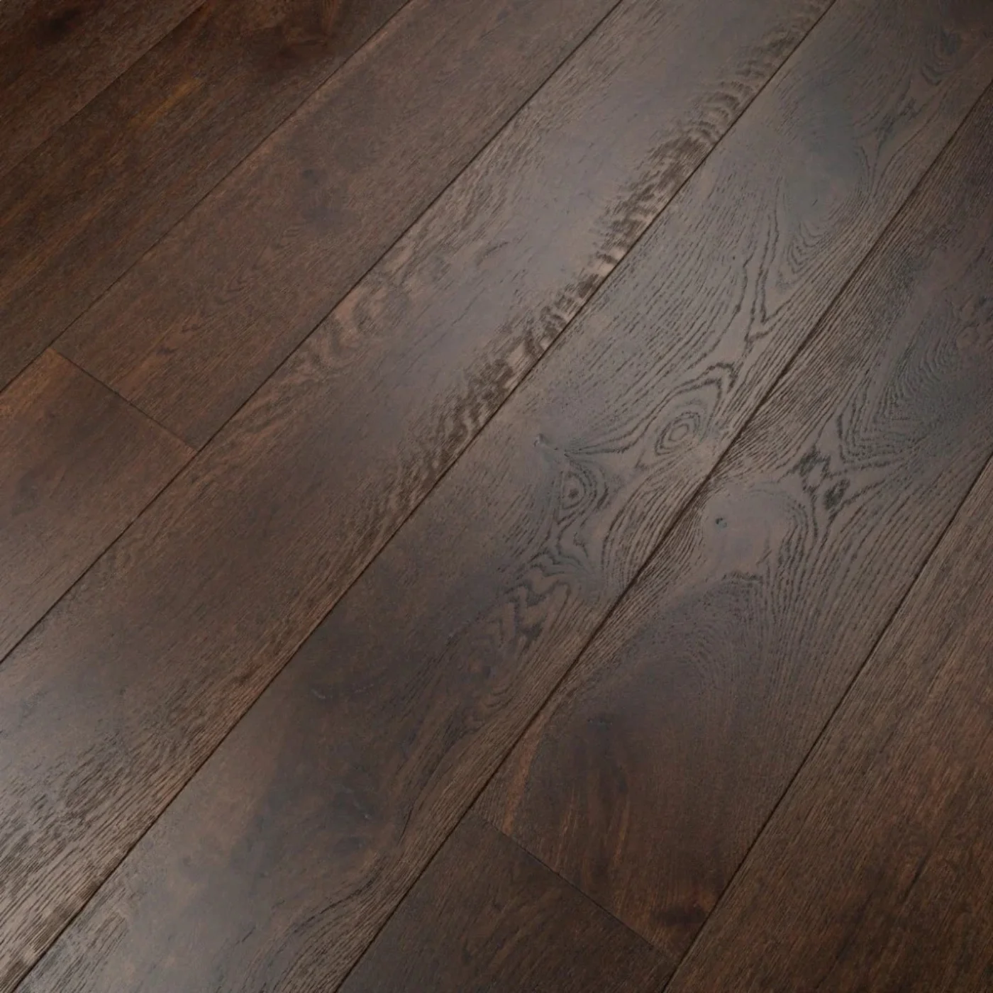 Enhance your interiors with our Plank Engineered Oak Flooring in Mocha Oak, Rustic Grade. This flooring showcases a rich, deep color that adds warmth and sophistication to any room. The unique rustic grade highlights the natural characteristics of the wood, while the oiled finish provides a protective layer against damage. Perfect for traditional and modern designs, this flooring option creates an inviting atmosphere in your home.