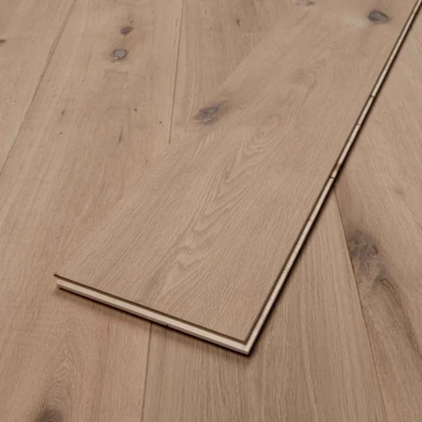 Unfinished Natural Engineered Oak planks for a flooring solution with character. These planks provide a rugged, authentic look that complements both classic and contemporary interiors.