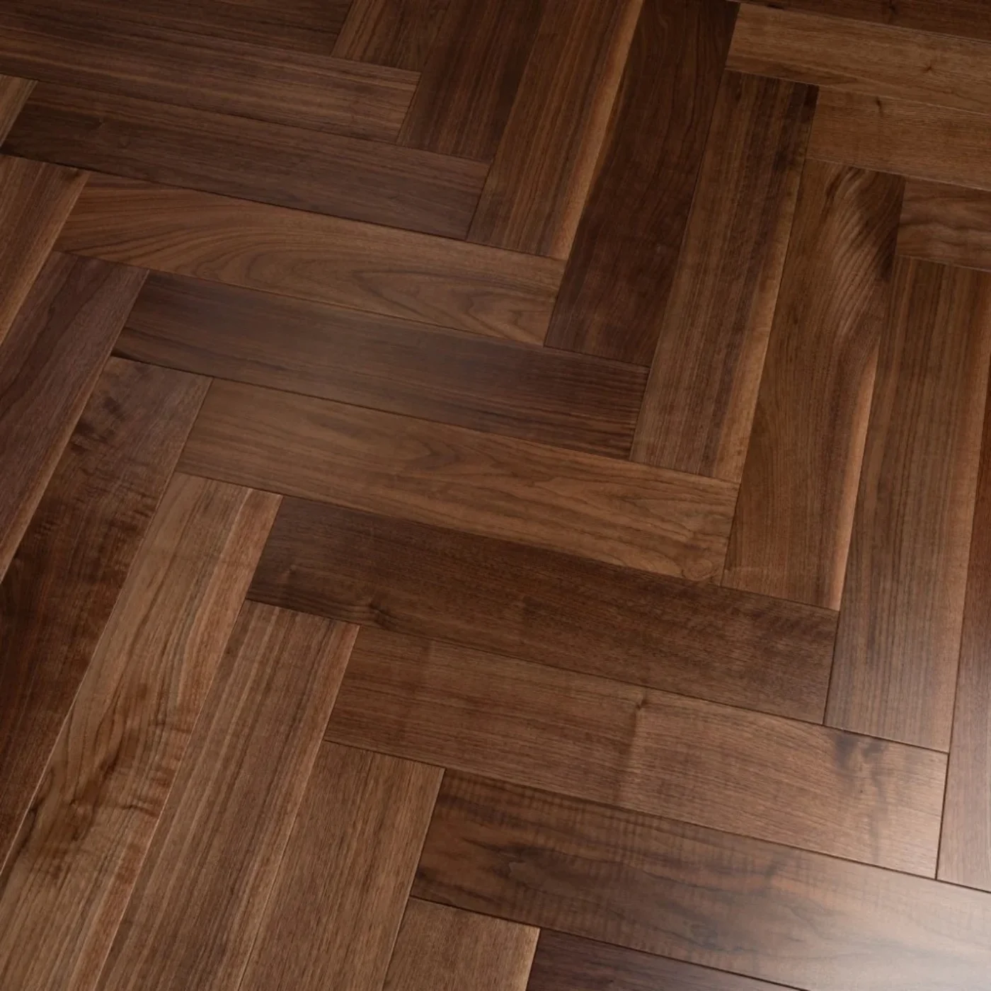 Parquet, Herringbone, American Walnut, Dark Brown, UV Lacquered